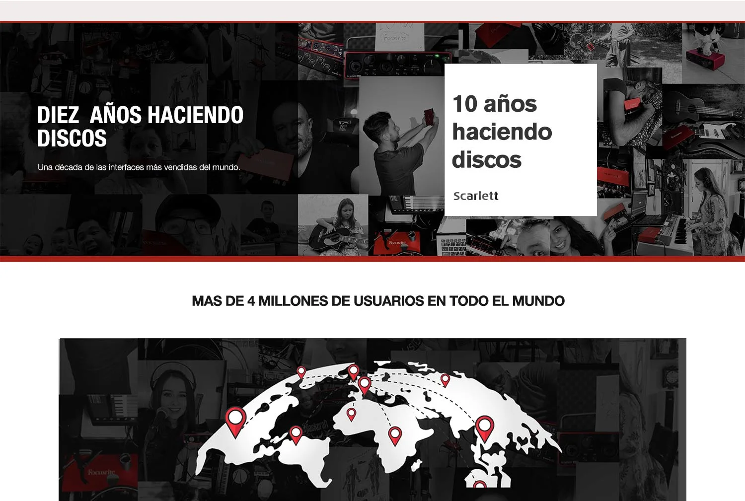 Gracias a más de cuatro millones de usuarios como tú, repartidos en 250 países y territorios, el audio de alta calidad que ofrece Scarlett ha ayudado a grabar más discos que cualquier otra interfaz de la historia.
