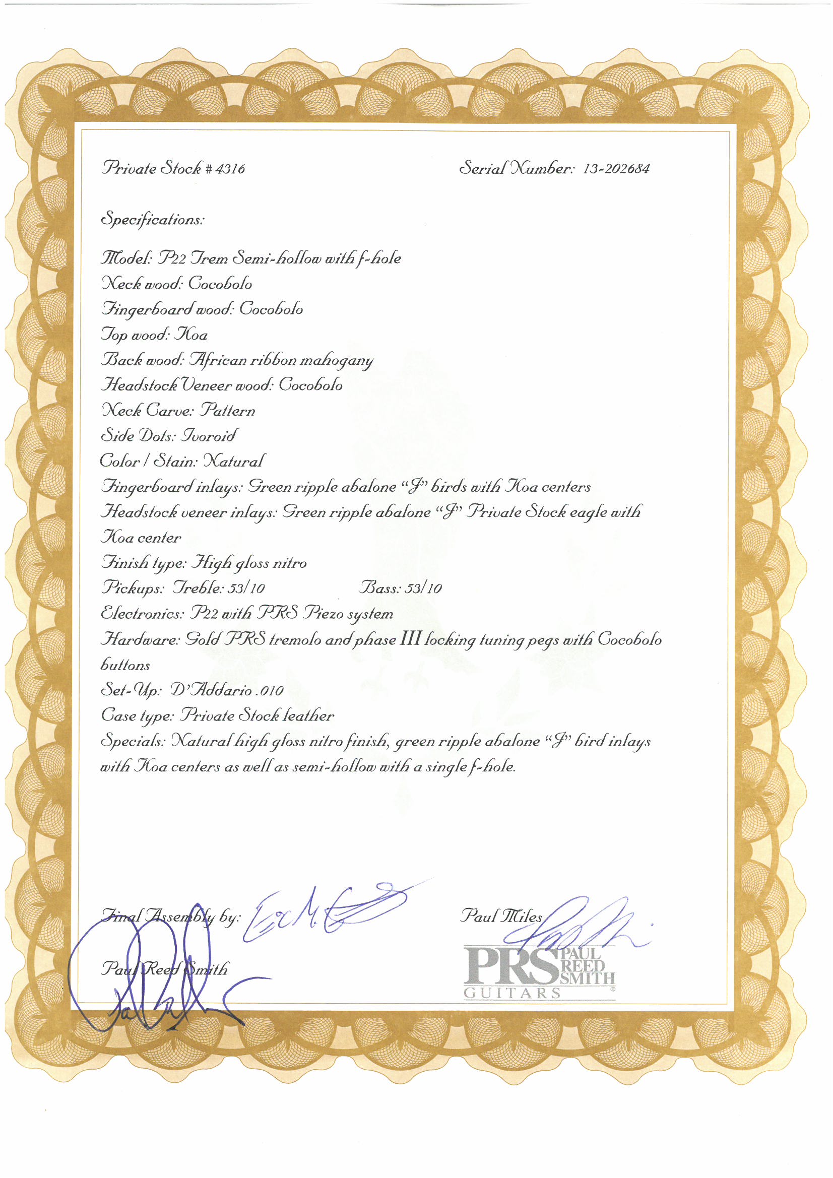 PS#4316 P22 Trem Semi-Hollow